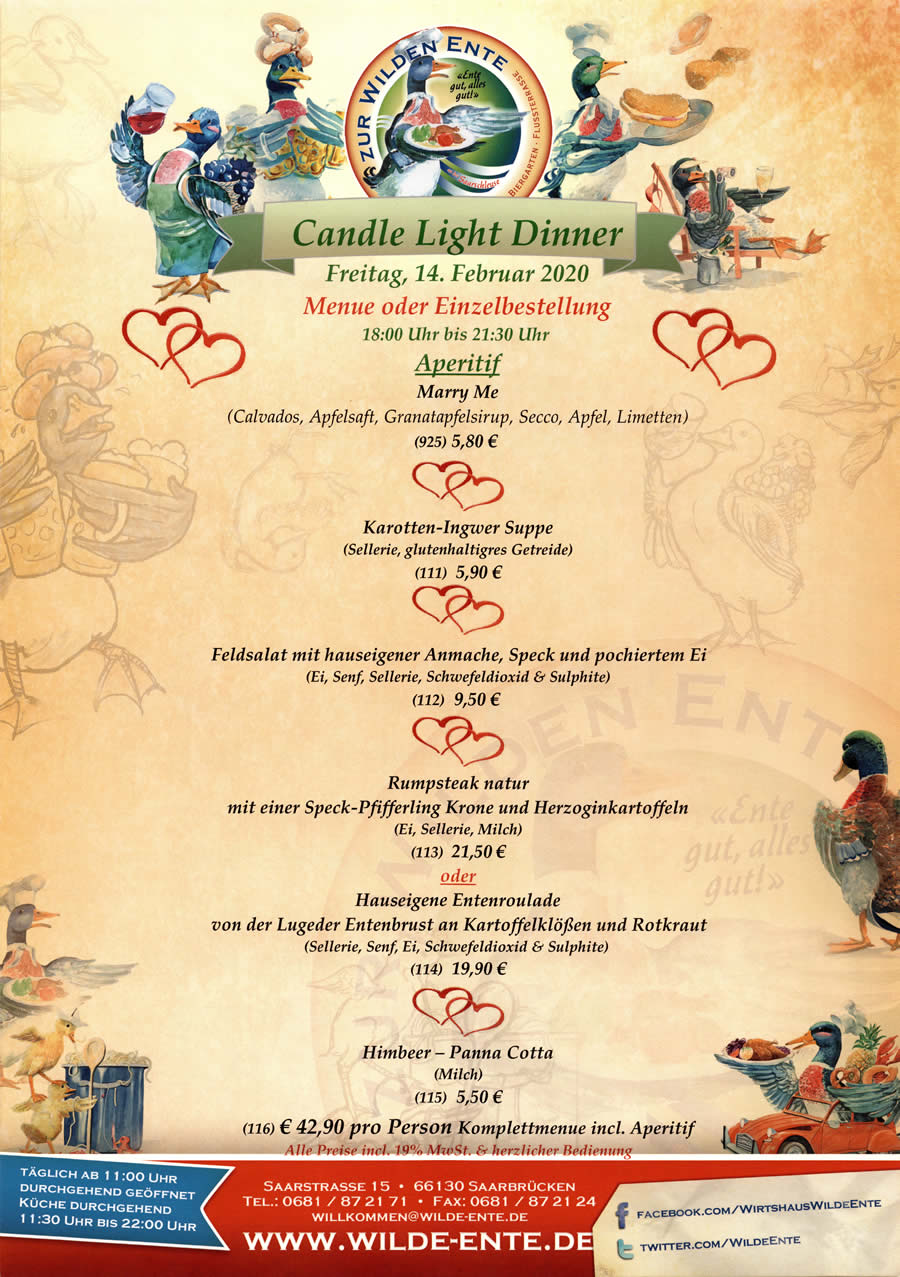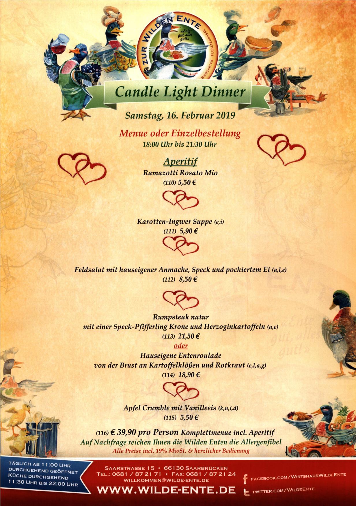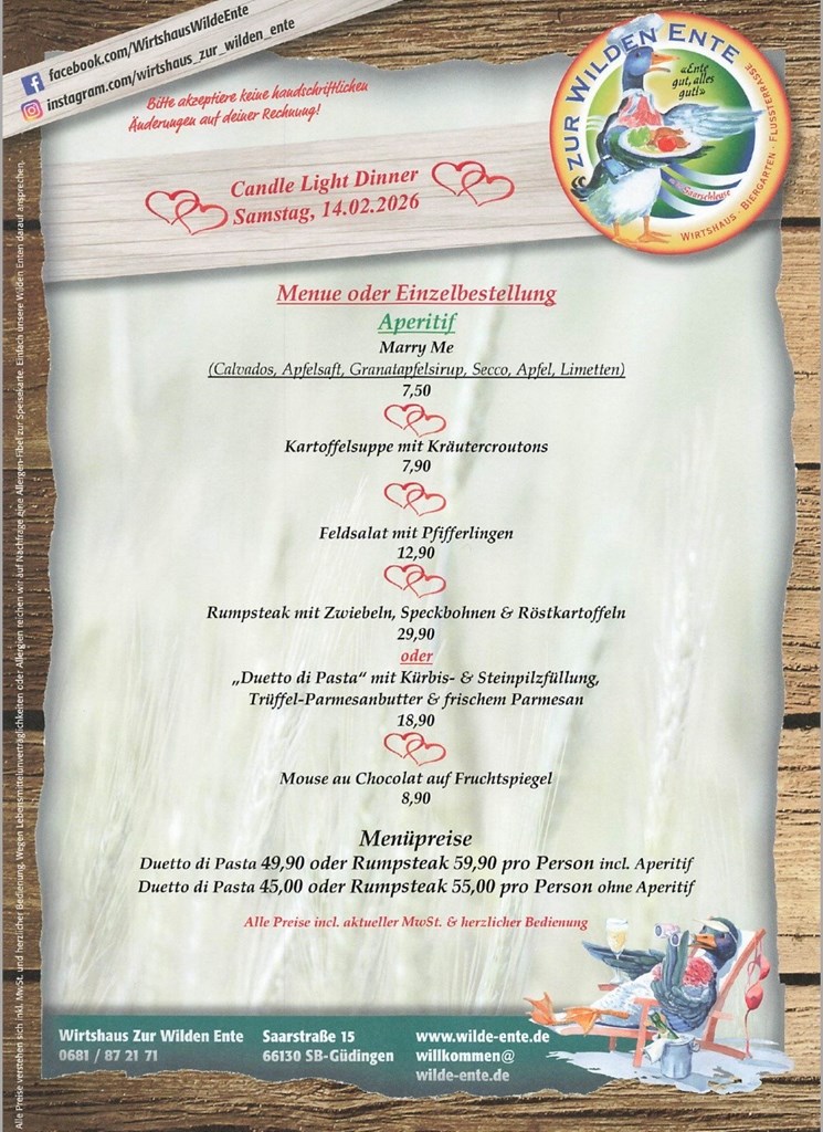 Genießt unser Liebes-Menü im komplett mit Kerzen ausgeleuchteten romantischen Wirtshaus.